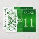 This romantic emerald green and white floral double-sided table number post card has a PRINTED satin look ribbon and bow with a pair of PRINTED diamond jewel and FAUX glitter joined hearts on it that matches the St. Patrick's Day wedding invitation shown below. You must customise the card for EACH table number that you need, by changing the "11" to each number you need, adding it to your cart, and then repeating the process until you have the correct number of individual cards in your cart. If you have any questions, email niteowlstudio@gmail.com.