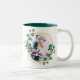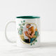 Personalised double sided 2 photo template two-tone mug featuring a gold hexagon frame, water colour leaf design and 2 of your favourite images.