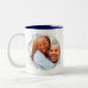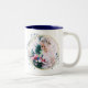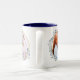 Personalised double sided 2 photo template two-tone mug featuring a gold ring frame, water colour flower design and 2 of your favourite images.