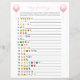 This double sided game card features two different versions of emoji pictionary on the front and back, and is perfect for a baby shower or baby sprinkle. This emoji pictionary baby shower game features a watercolor pink balloon. Your guests can solve these common pregnancy and baby related phrases by decoding the emoticons. ANSWER KEY: 1. Baby Shower 2. Twins 3. Triplets 4. Mama to Be 5. Water Breaking 6. Hospital Baby Bag 7. Due Date 8. Baby Bottle 9. Trip to the Hospital 10. Cutting the Cord 11. Bun in the Oven 12. No Alcohol 13. Girl or Boy? 14. Pregnancy Announcement 15. Baby Food 16. Heart Burn 17. Morning Sickness 18. Butterfly Kisses 19. Baby Moon 20. Pregnancy Cravings. Your guests can solve the names of the children’s books and nursery rhymes by decoding the emoticons. ANSWER KEY: 1. Five Little Monkeys Jumping On The Bed 2. Twinkle Twinkle Little Star 3. Itsy Bitsy Spider 4. Rainbow Fish 5. The Very Hungry Caterpillar 6. The Lion, The Witch & The Wardrobe 7. Hickory Dickory Dock 8. I spy 9. Green Eggs and Ham 10. Winnie The Pooh 11. Charlotte's Web 12. Alice in Wonderland 13. If You Give A Mouse A Cookie 14. Hey Diddle Diddle 15. There Was an Old Woman 16. One Fish, Two Fish, Red Fish, Blue Fish 17. Where The Wild Things Are 18. Goldilocks and the Three Bears 19. The Three Little Pigs 20. Old MacDonald Had a Farm. You can personalise this design by clicking on "Personalise this template" or if you wish to change the font, colours or arrange the design elements in a different way you can click on "Edit using Design Tool".