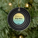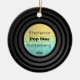 This retro-inspired design features a faux vinyl album with muted gold and green disco lights centre pattern. There is plenty of customisable text for you to make this unique vintage keepsake your own. Shown here as a "Pop Star" ornament, this versatile design can be customised for any music preference and makes a great milestone birthday gift. The reverse side has the same pattern and text options. This style is available in a variety of patterns, as a single sided ornament, a double-sided ornament and photo ornament option.