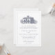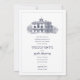 Impress your guests with this elegant double sided wedding invitation by JessicaAmber. This classic card features a vintage illustration of a Italian villa, which you can replace with an image of the destination where you will be married (transparent or white background preferred). Elegant dark blue lettering displays the bride and groom names, and details of the wedding, including the location, date and time.