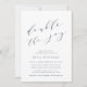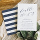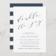 Simple and elegant baby shower invitation for twins on the way features "double the joy" in chic navy blue modern calligraphy lettering. Personalise with your twin baby shower details beneath. Baby shower invitations reverse to wide harbour blue and white stripes. Customise the paper type or shape to make this elegant design your own.