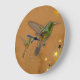 This clock is for anyone who likes humming birds one is fairly close and the second one is a bit in the distance. The back round is on the side of gold coloring there is a bit of bright gold flecks anthem the stars are gold colored.