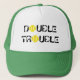 DOUBLE TROUBLE Tennis hat for doubles players team. Sports cap for men women and kids (boy or girl) playing together. Cool gift ideas for tennis coach, player, high school team and fans. Yellow tennis ball design with vintage typography. Tennis humour quote. Sun protection caps for him and her.