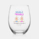 Double Trouble Twin Boy & Girl Baby Shower Stemless Wine Glass