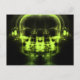 Double X-Ray Skulls with Headphones - Lime Green Postcard