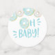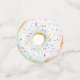 Sprinkle frosted doughnut table confetti featuring "ready to pop" and "oh baby" for a baby shower or sprinkle. Customise with mummy-to-be's name
