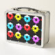 This is a standard metal lunchbox that appears to work just fine. We designed this box ourselves with an uploaded photo and custom text on the front and back. It looks absolutely beautiful except the front of the lunchbox is not centered like it shows in the photo. The print borders don't align with the inset flat part of the box where the preview photo online showed it perfectly centered in there. The back looks nice and centered though.