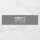 Cute birthday party bottle label for a doughnut theme birthday party featuring doughnut illustration with sprinkles. The text at the top says "DONUT GROW UP." Customise this product by adding your child's name, age, and date.