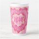 Sweet Pink Heart Doughnut on a Striped Background. Cute Mug for Valentine Treats.