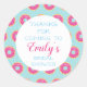 The sticker is made on wonderful paper and had no problem sticking to the bag that I purchased to put it on. I wanted to find a design that would be cute for the bride and groom and this one fit the bill as it has cute "bees" buzzing around and the wedding was taking place in a town called "Bee Cave". The packaging was great and protected the stickers. The website is easy to navigate and there are so many color choices. I had no problem finding a color that the bride was using on everything else selected. The design was adorable and there were many to choose from. You can make the figure as larger or smaller and you can place the photo and writting whereever you want to in the sticker. The printing is fabulous..better than expected.