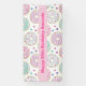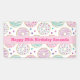 Birthday banner with a deliciously fun pattern. Illustration of pastel pink and green doughnuts with sprinkles and icing.
