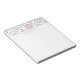 A notepad with a deliciously fun pattern. Illustration of pastel pink and green doughnuts with sprinkles and icing.