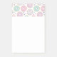 Sticky notes with a deliciously fun pattern. Illustration of pastel pink and green doughnuts with sprinkles and icing.