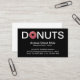 Fun doughnut shop business card design in a clever design with the word Doughnut created with an actual doughnut that replaces the letter o in the word doughnut and simple layout printed on rounded corner business card paper stock.