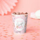Doughnut sweet one 1st birthday party paper cups. Watercolor illustrations and hand lettered text. Part of a collection.