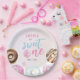 A cute and girly 1st birthday paper plates designed with watercolor doughnuts.