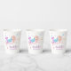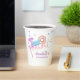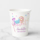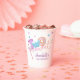 Cute and sweet 2nd/second birthday paper cup features a doughnut with pink icings and sprinkles on a white background with blush pink watercolored brush style