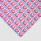 Tissue paper with a yummy illustration of a pink frosted doughnut with colourful sprinkles, tiled pattern. Set on a purple and pink striped pattern with a faded vintage look.