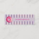 A delicious and sweet skinny business card to advertise your website or other info. With a yummy illustration of a pink frosted doughnut with colourful sprinkles. The background is a vintage style background with pastel purple vertical stripes and a light purple horizontal stripe across the centre to enter your text, for easy legible reading. Has a cute and whimsical flair.