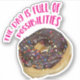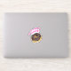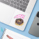 Cute and funny laptop sticker with a photo of a chocolate covered doughnut topped with colourful candy sprinkles. Text is an inspirational yet fun message in a bright, colourful pink, "The day is full of possibilities." Contact us to request matching products.