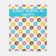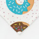 This fleece blanket features a pattern of doughnuts with pastel-coloured icing and sprinkles.
