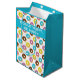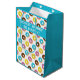This gift bag features a pattern of doughnuts with pastel-coloured icing and sprinkles.