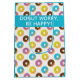The light blue band on top reads "doughnut worry, be happy!" in white font.