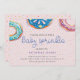 Colourful sprinkles background with a decorative script "baby sprinkle" paired with doughnuts and candy illustrations. All your custom information is written in a sans serif font. Check out our store where you can mix and match matching items.