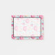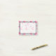 A yummy set of sticky notes with a delicious pattern design. Glazed pink doughnuts with sprinkles. Mouth watering cupcakes in pink and blue with rosettes and strawberries on top. Some pastel pink french pastry macarons and little pink candy buttons also decorate this pattern full of sweet treats. A semi- transparent overlay islayered over top so you can write legibly over the pattern design.