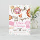 Doughnuts, pizza and pyjamas girl birthday invitation.