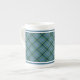 Bone china mug with the Douglas family ancient clan tartan pattern. Traditional vintage Scottish plaid from 1819 in green and light blue, with royal blue and white accents.