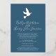 Blue grey, white and foil bird dove with two ribbons formal simple wedding invites. Double-sided simple dove with two ribbons wedding invitations with your own couples photo on the reverse. Designed for a formal wedding hosted by the couple to be wed. Original design by www.mylittleedenweddings.com