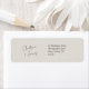 Chic and elegant wedding address label sticker, featuring couple names in a contemporary set of blackish fonts against a soft pastel dove grey background. This item forms part of a wedding suite containing invitations and stationary in a variety of neutral mix and match items. .