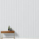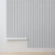 A dove grey and white two inch wide butcher stripe wallpaper.