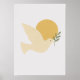 Minimalist artwork of a dove holding an olive branch with a radiant sun. A timeless Christian symbol of peace, hope, and the Holy Spirit.