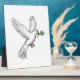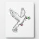 Tattoo style illustration of a dove or pigeon flying with olive branch.