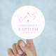 Dove and Christian cross baby girl baptism stickers in pink and white, ideal for guest favours.