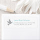 Double-sided simple grey dove with two purple ribbons wedding return reply address label for your guest to send back RSVP. Uniquely designed by Sarah Trett.