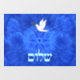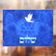 Features "shalom" (Hebrew "peace") and a dove carrying a bit of olive branch in its beak on a nice blue and white fractal background featuring a Star of David and the suggestion of bird wings or clouds.