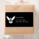 Dove silhouette with open wings and a cross.