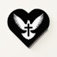 White dove silhouette with open wings and a cross on black backrgound.