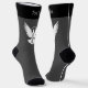 Flying dove with simple key icon. Custom background colour. Custom top stripe colour. Custom monogram. Custom text on each sock.