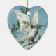 A vintage classic. This dove lands on an Olive branch with another olive branch in it's mouth speaking the meaning of "Peace on Earth" at Christmas or any other time of the year. A sky blue background let's this beautiful Dove really show. The back of this heart shaped ornament is in a glittery look silvery white with darker greys and some touches of black floral style pattern. Either way this ornament spins it's a real beauty! Email me here if you need this or any of my Zazzle designs customised or added to other Z products. If I can ... I will!