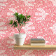 Doves and flowers bird art pattern in white on coral peach pink. Transform your space with this charming wallpaper featuring flying peace doves and blooming wild flowers in a vibrant folk art style. The intricate bird and floral botanical pattern adds a touch of whimsy and warmth, perfect for creating a cosy, inviting atmosphere in any room. Easy to install and beautifully detailed, this wallpaper is a delightful way to bring a unique, artistic touch to your home. Original art by Nic Squirrell. Change the background colour in the Design Tool, or email squirrell@rocketmail.com