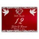 This romantic design features an elegant crimson red background with glitter borders, heart & doves with a place for the table number, couple's names and date of event. Available in several colours for your wedding theme. (Glitter is simulated in the artwork). Designed to coordinate with the "Two Shall Become One - Doves, Heart & Glitter" Wedding Collection. To change details, click «Personalise». To move the text or change the text size, font, or colour click «Click to customise further».