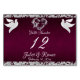 This romantic design features an elegant plum background with glitter borders, heart & doves with a place for the table number, couple's names and date of event. Available in several colours for your wedding theme. (Glitter is simulated in the artwork). Designed to coordinate with the "Two Shall Become One - Doves, Heart & Glitter" Wedding Collection. To change details, click «Personalise». To move the text or change the text size, font, or colour click «Click to customise further».