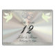 This romantic design features an elegant white pearl background with ribbon borders, linked hearts & doves with a place for the table number, couple's names and date of event. Available in several colours for your wedding theme. (Ribbon is simulated in the artwork). Designed to coordinate with the "Two Shall Become One - Silver & Gold" Wedding Collection. To change details, click «Personalise». To move the text or change the text size, font, or colour click «Click to customise further».