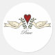 Peace doves joining their olive branches to surround a folkart style heart with the inspirational message of peace.